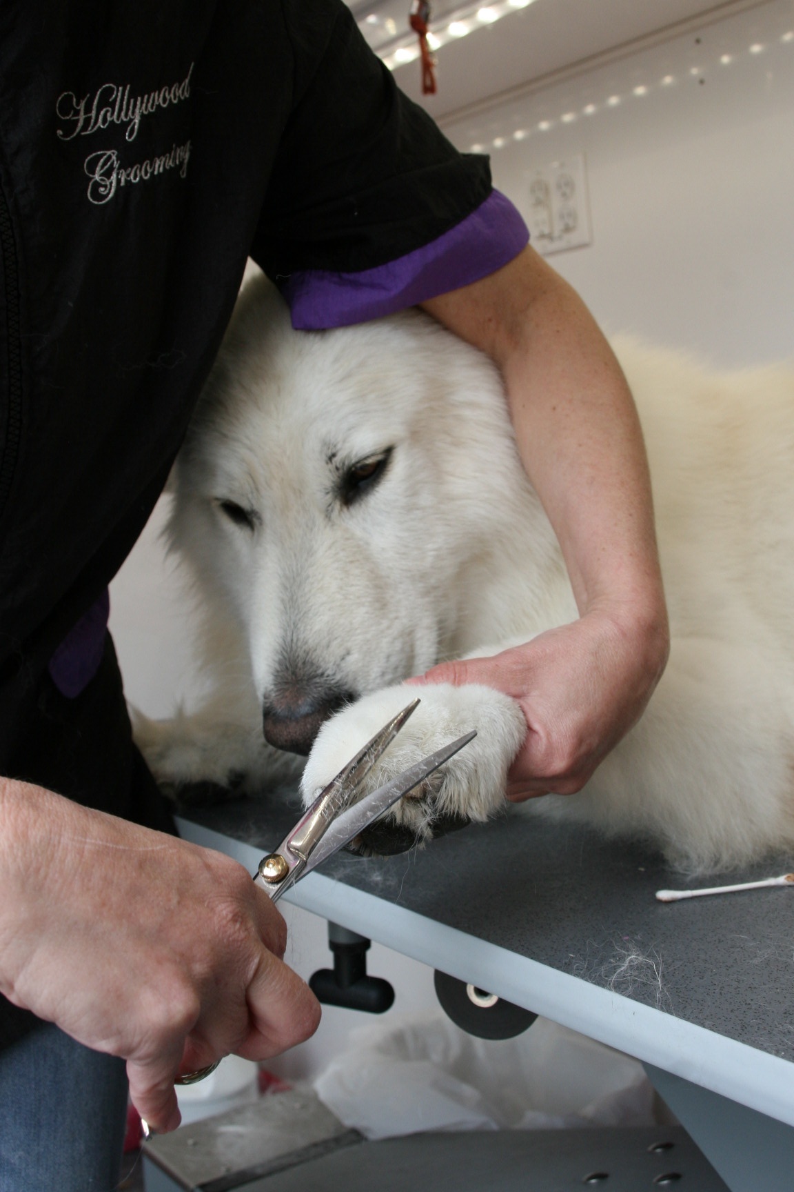 Get into a weekly routine of nail clipping, keeping the sessions short – you might like to clip the front and rear nails in separate sessions. It’s better to clip small amounts off regularly than to clip larger portions less frequently. Only clip the hollow, end part of each claw, avoiding the area beyond that has the red vein running through it. If you accidentally clip too far and hit the vein, put on styptic powder to stop the bleeding. If you don’t have that you can dip the nail in flour, or hold it against a wet teabag. You can choose the scissor or guillotine type of clipper. Heavy duty ones will be needed for adult White Swiss Shepherds.