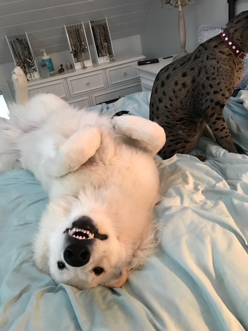 The reason it takes so long to select breeding dogs is that we are uncompromising about finding animals that are exceptional in all of three categories: first, they must have an impeccable multi-generational health history, second, they must be “stunning” with a beautiful white coat, black pigment, ideal conformation and finally, as my passion is for service and therapy, each dog must have high intelligence, easy trainability, and well-balanced temperament. It is relatively easy to satisfy one or two of these criteria but very difficult to find them all in one animal.